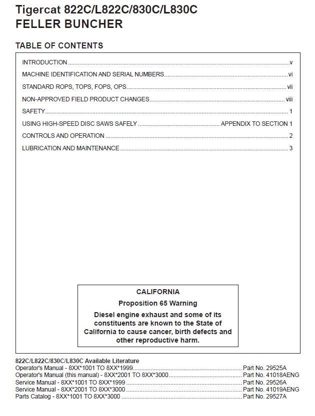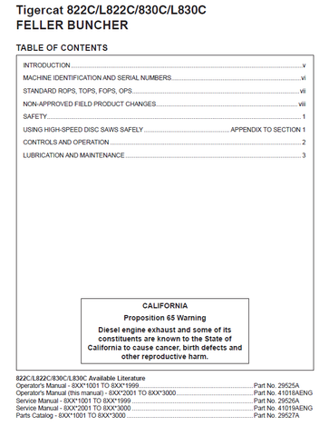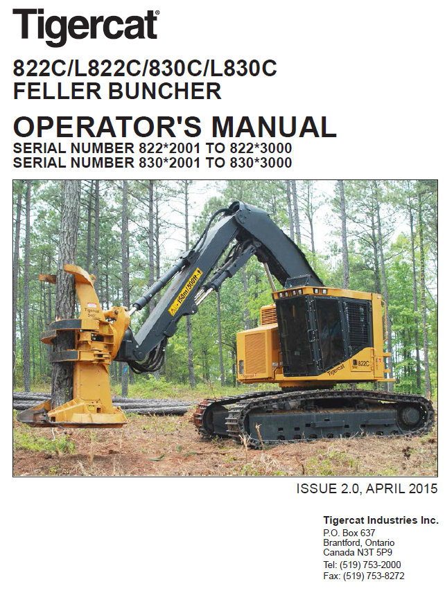 Download Complete Operator/User Manual For Tigercat L830C Feller Buncher | Serial No. (83021001-83023000, 83022001-83023000)