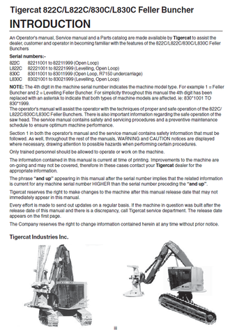 TIGERCAT L830C FELLER BUNCHER SERVICE MANUAL (83021001-83023000, 83021001-83021999) - PDF FILE DOWNLOAD