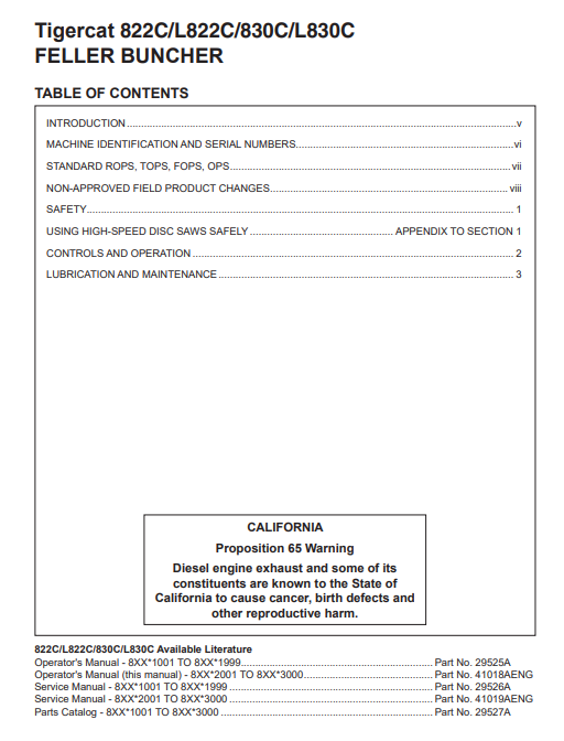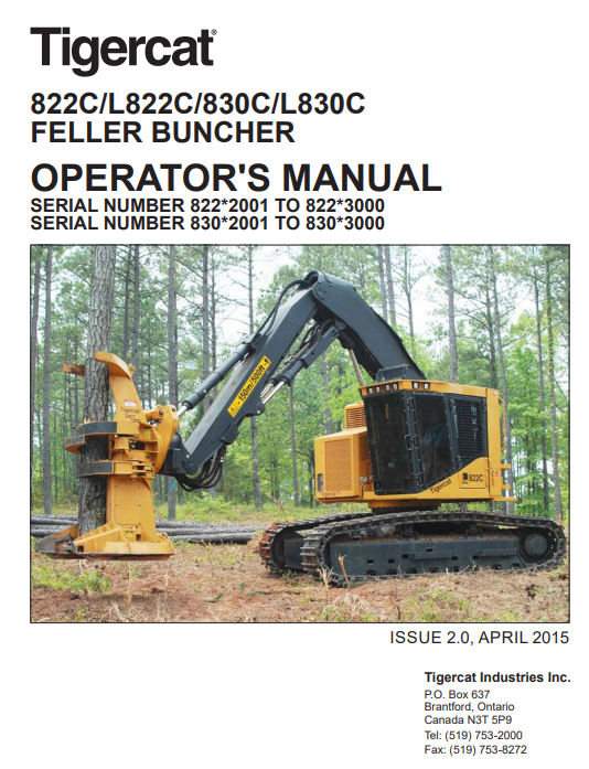 Download Complete Operator/User Manual PDF For Tigercat L830C Feller Buncher | Serial No. (83021001-83023000, 83022001-83023000)