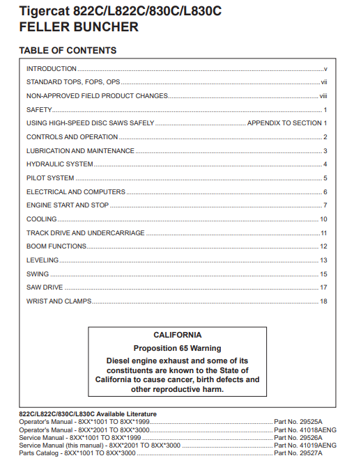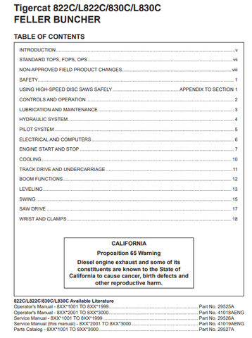 Download Complete Service Repair Manual PDF For Tigercat L830C Feller Buncher | Serial No. (83021001-83023000, 83022001-83023000)