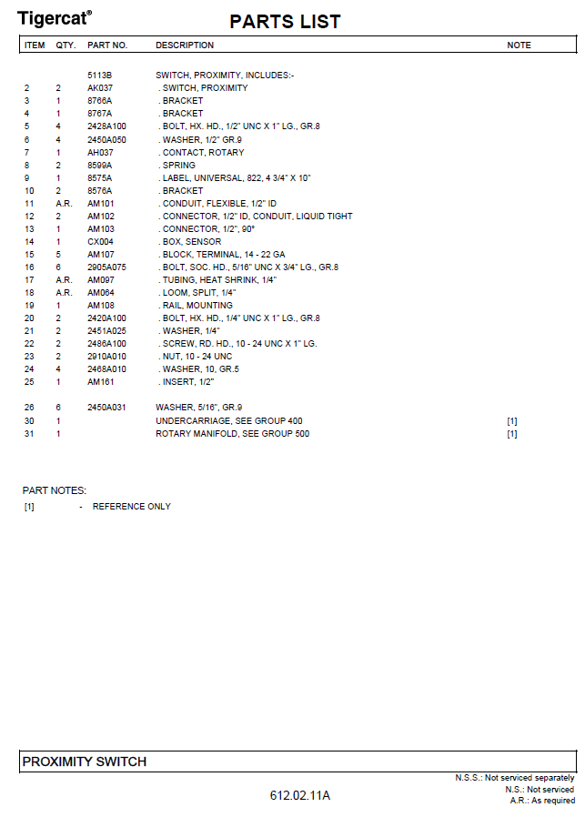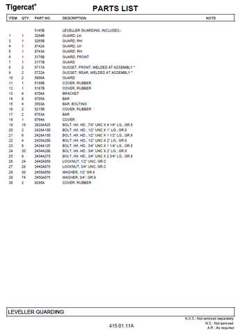 TIGERCAT L845 PARTS CATALOGUE MANUAL