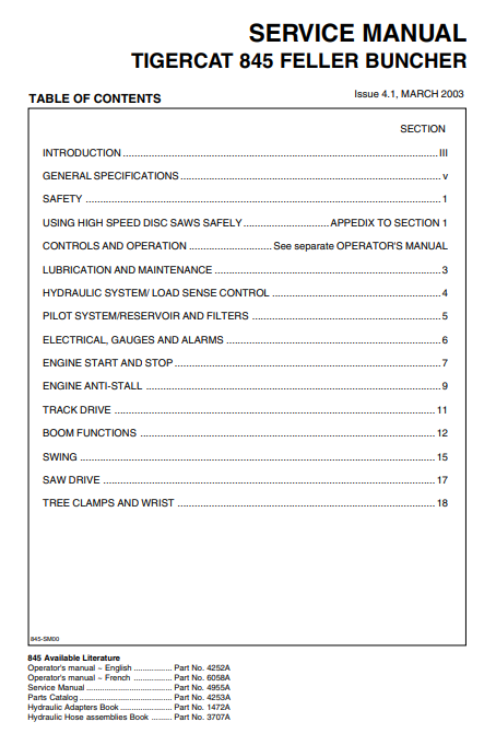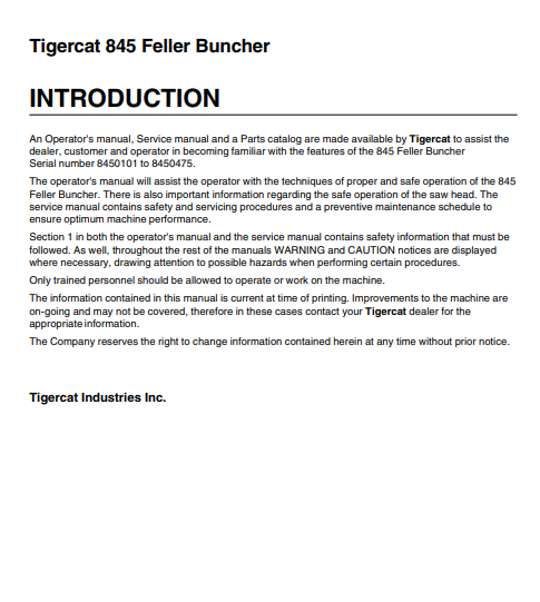 Download Complete Service Repair Manual PDF For Tigercat L845 Feller Buncher | Serial No. (845T475-845T500)