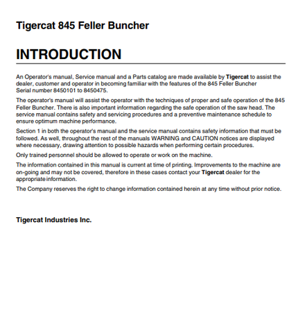 Tigercat L845 Feller Buncher Service Repair Manual (845T475-845T500) - PDF File Download