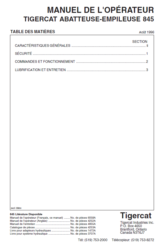 TIGERCAT L845 BUNCHER OPERATOR/USER MANUAL