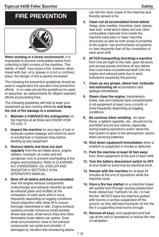 Tigercat L845B Feller Buncher Operator/User Manual (845T0501-845T1499) - PDF File Download