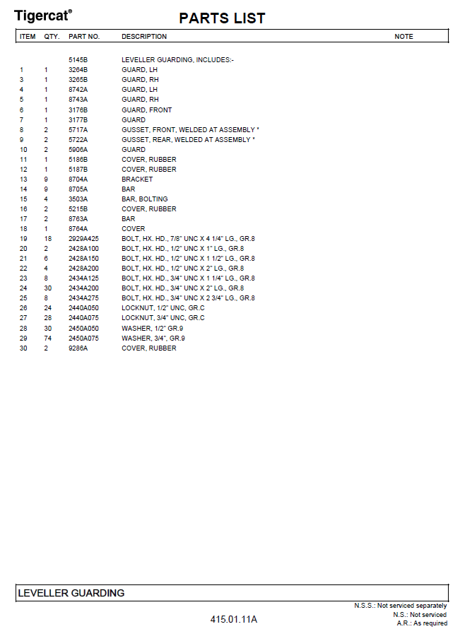 TIGERCAT L845B PARTS CATALOGUE MANUAL