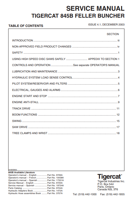 Download Complete Service Repair Manual PDF For Tigercat L845B Feller Buncher | Serial No. (845T0501-845T1499)