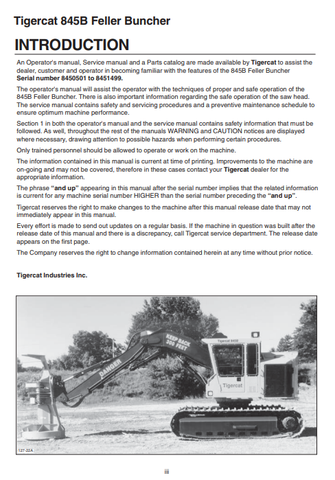 Tigercat L845B Feller Buncher Service Repair Manual (845T0501-845T1499) - PDF File Download