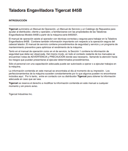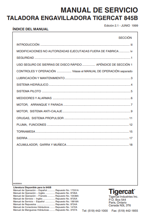 Download Complete Service Repair Manual PDF For Tigercat L845B Feller Buncher | Serial No. (845T0501-845T1499) - Spanish