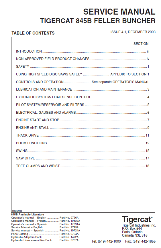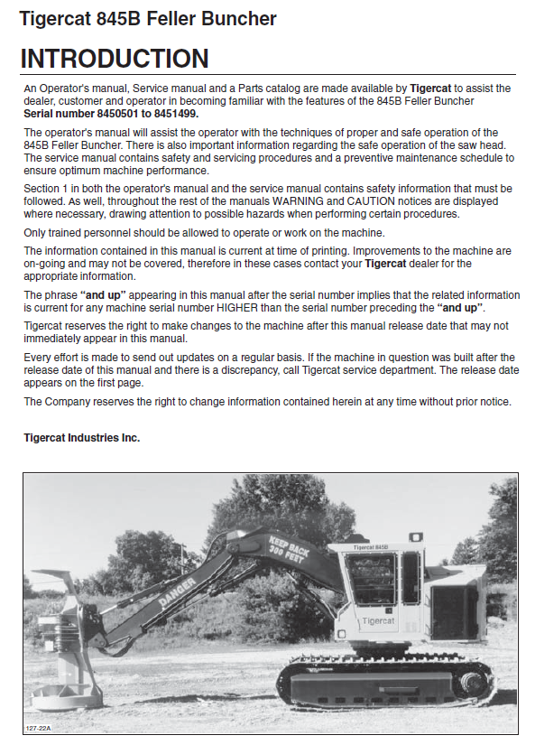 Download Complete Service Manual For Tigercat L845B Feller Buncher | Serial No. (845T0501-845T1499)