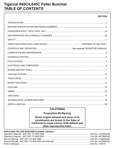 Download Complete Service Repair Manual PDF For Tigercat L845C Feller Buncher | Serial No. (84521501-84522500, 84521861-84522500)