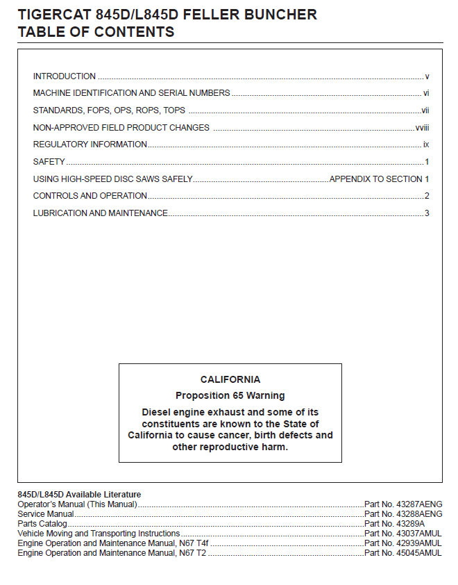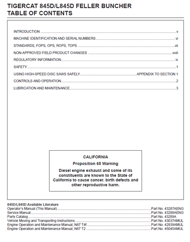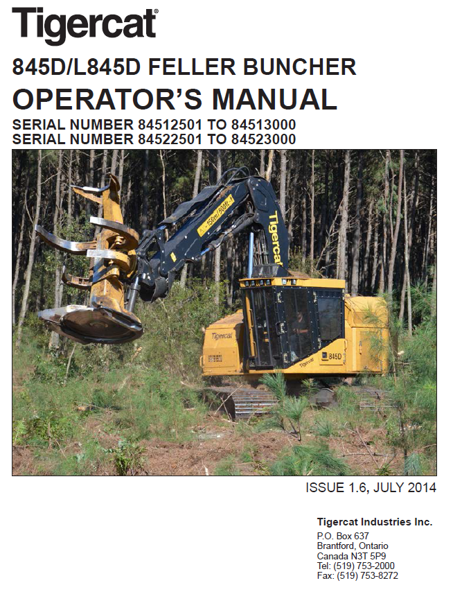 Download Complete Operator/User Manual For Tigercat L845D Feller Buncher | Serial No. (84522501-84523000)