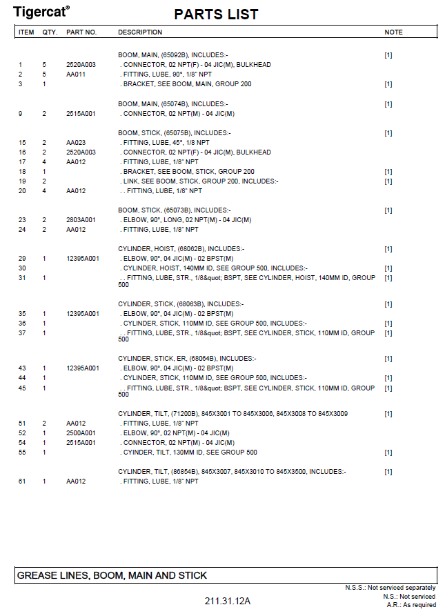 TIGERCAT L845E FELLER BUNCHER PARTS CATALOGUE MANUAL (84523001 - 84523500) - PDF FILE DOWNLOAD