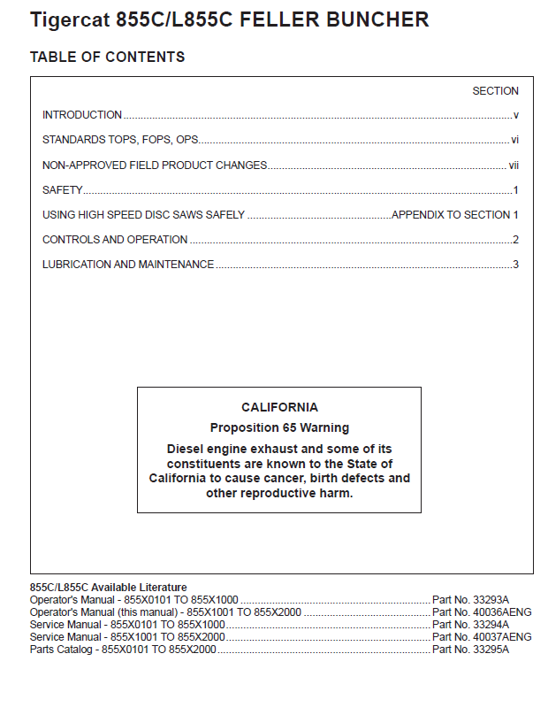 Download Complete Operator/User Manual For Tigercat L855C Feller Buncher | Serial No. (85520101-85522000, 85521001-85522000)