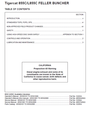 TIGERCAT L855C FELLER BUNCHER OPERATOR/USER MANUAL (85520101-85522000, 85521001-85522000) - PDF FILE DOWNLOAD