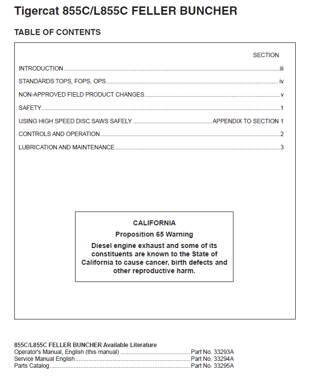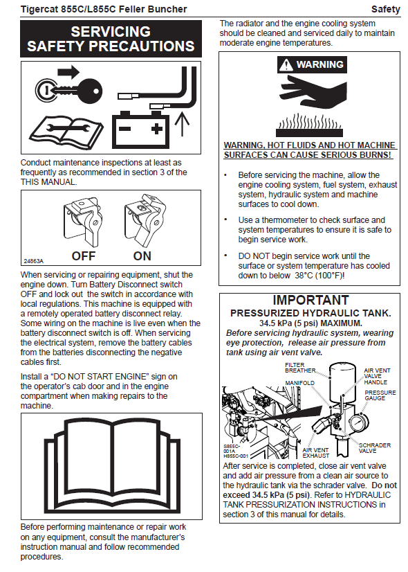 Tigercat L855C Feller Buncher Operator/User Manual (85520101-85522000, 85520101-85521000) - PDF File Download