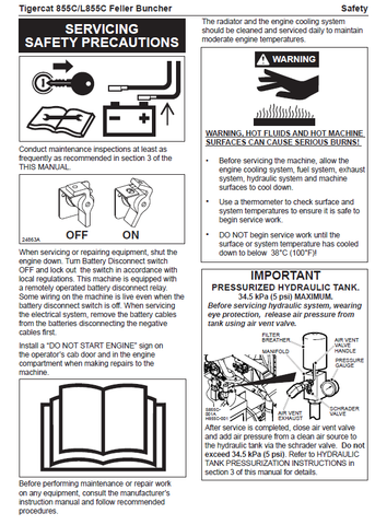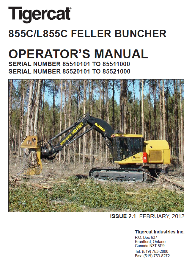 Download Complete Operator/User Manual For Tigercat L855C Feller Buncher | Serial No. (85520101-85522000, 85520101-85521000)