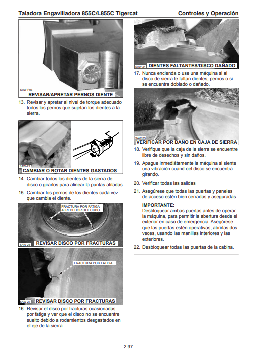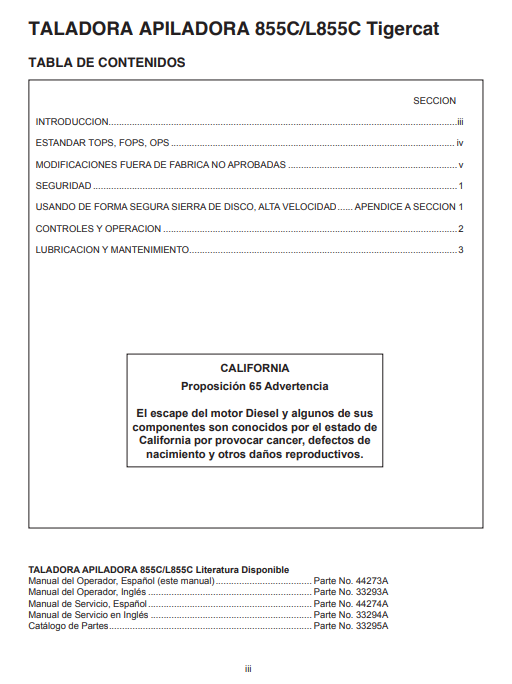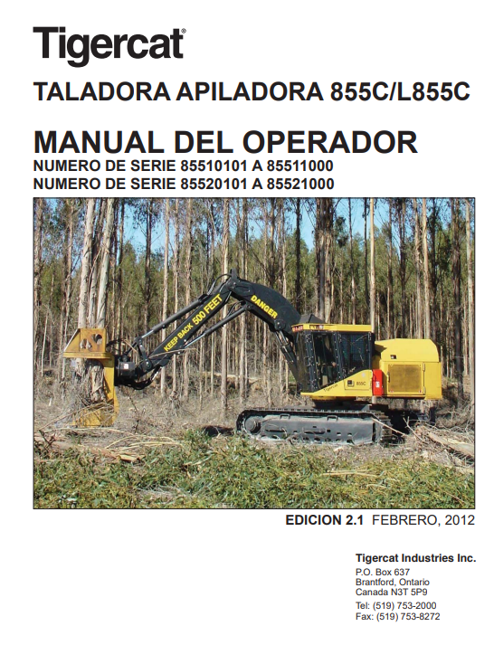Download Complete Operator/User Manual PDF For Tigercat L855C Feller Buncher | Serial No. (85520101-85522000, 85520101-85521000) - Spanish