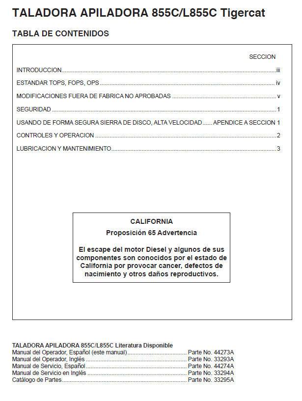 Tigercat L855C Feller Buncher Operator/User Manual (85520101-85522000, 85520101-85521000) - PDF File Download