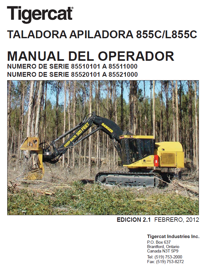 Download Complete Operator/User Manual For Tigercat L855C Feller Buncher | Serial No. (85520101-85522000, 85520101-85521000)
