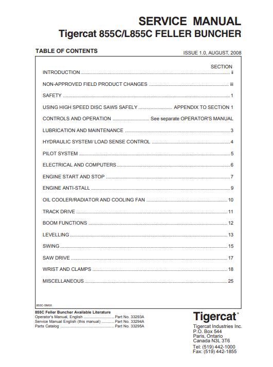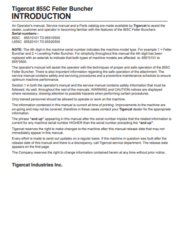 Download Complete Service Repair Manual PDF For Tigercat L855C Feller Buncher | Serial No. (85520101-85522000, 85520101-85521000)
