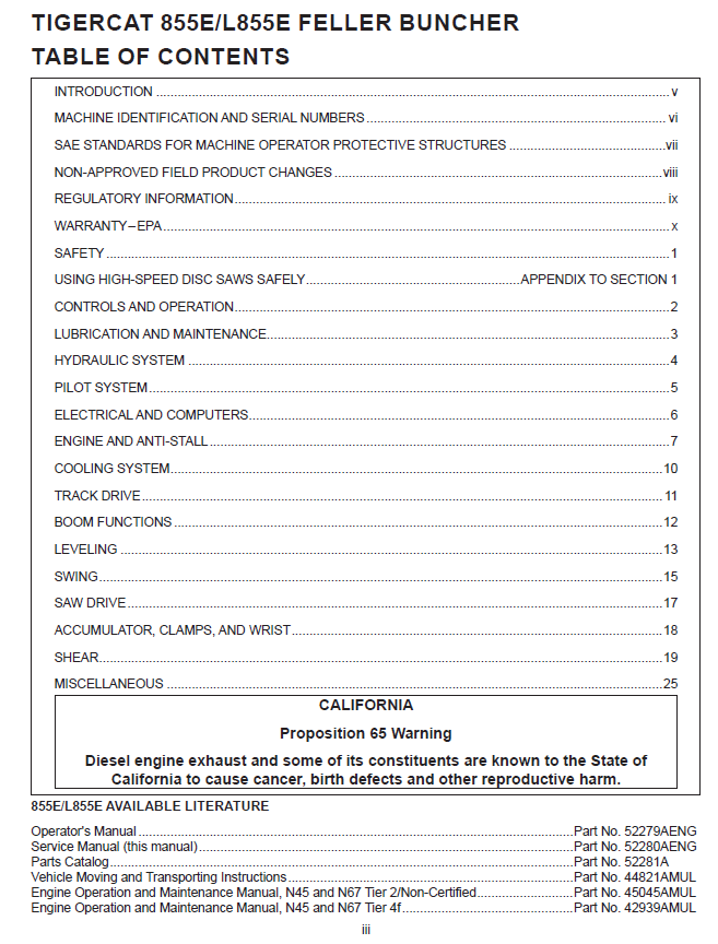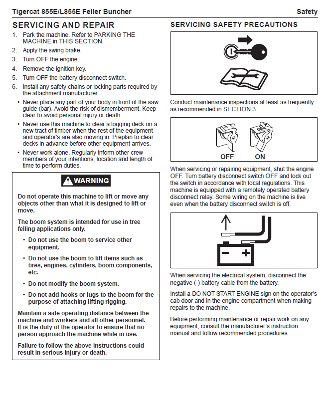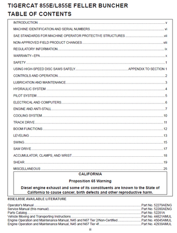 Download Complete Service Manual For Tigercat L855E Feller Buncher | Serial No. (85523001-85524000)