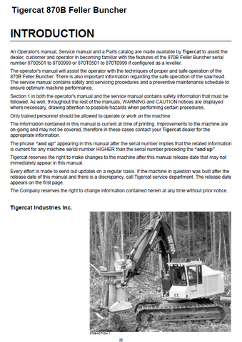 TIGERCAT L870B FELLER BUNCHER OPERATOR/USER MANUAL (870T0501-870T0999) - PDF FILE DOWNLOAD
