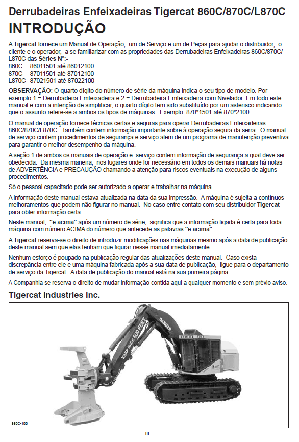 Download Complete Operator/User Manual For Tigercat L870C Feller Buncher | Serial No. (87021501-87023500, 87021501-87022100)