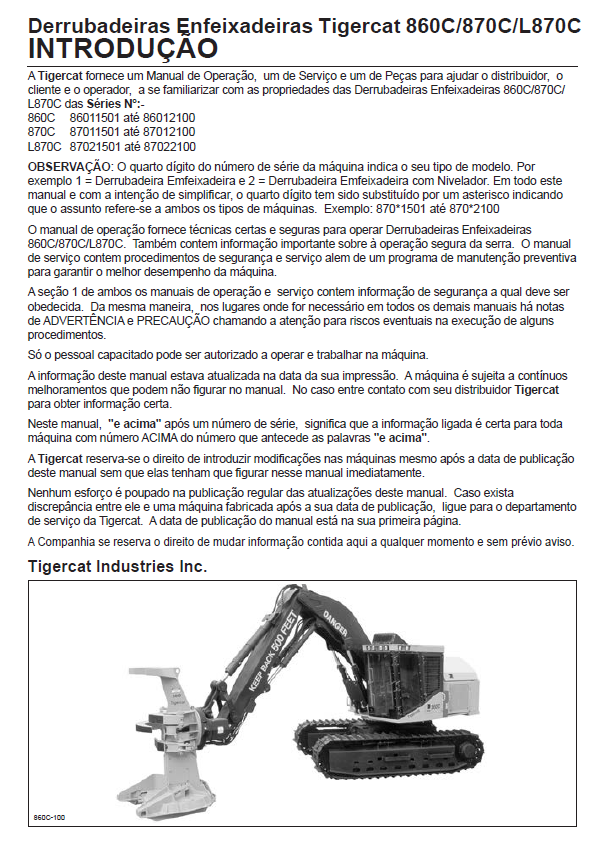 Download Complete Service Repair Manual For Tigercat L870C Feller Buncher | Serial No. (87021501-87023500, 87021501-87022100)