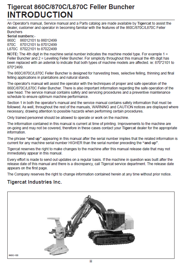 Download Complete Service Manual For Tigercat L870C Feller Buncher | Serial No. (87021501-87023500, 87022101-87022499)