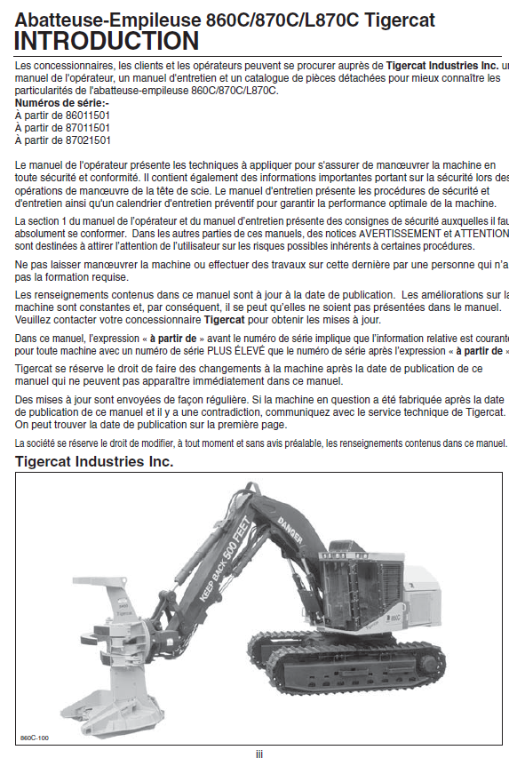 Download Complete Operator/User Manual For Tigercat L870C Feller Buncher | Serial No. (87021501-87023500, 87021501-87022100)