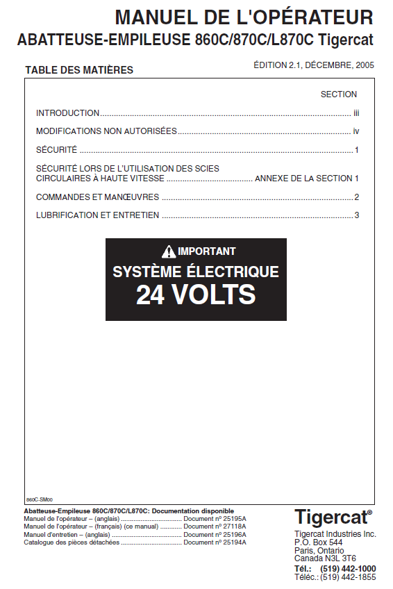 TIGERCAT L870C BUNCHER OPERATOR/USER MANUAL