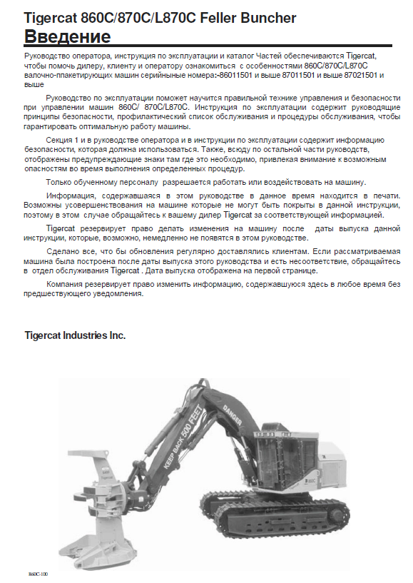 Download Complete Operator/User Manual For Tigercat L870C Feller Buncher | Serial No. (87021501-87023500, 87021501-87022100)