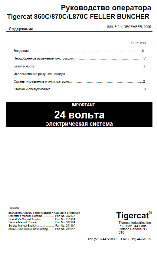 TIGERCAT L870C BUNCHER OPERATOR/USER MANUAL