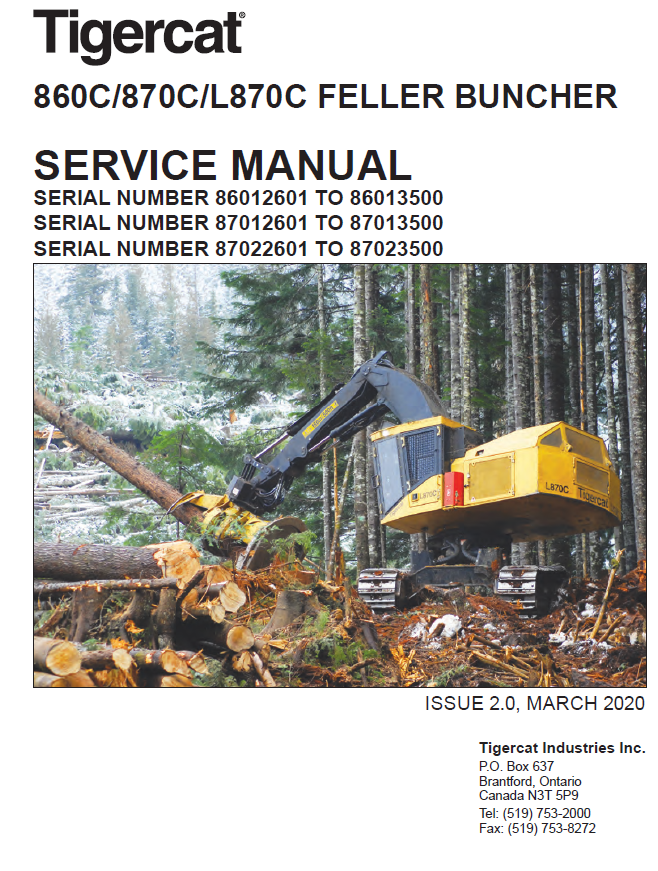 Download Complete Service Manual For Tigercat L870C Feller Buncher | Serial No. (87021501-87023500, 87022601-87023500)