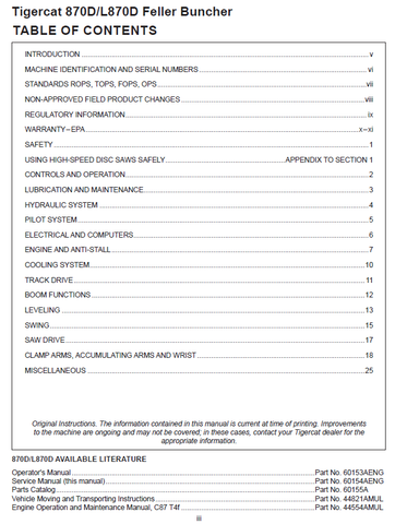 Download Complete Service Manual For Tigercat L870D Feller Buncher | Serial No. (87023501-8702500)