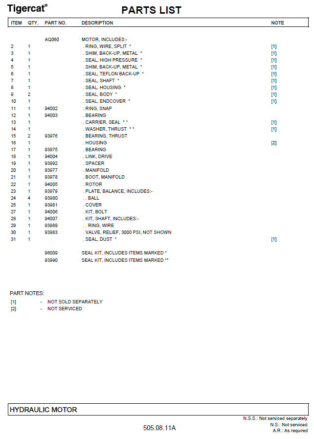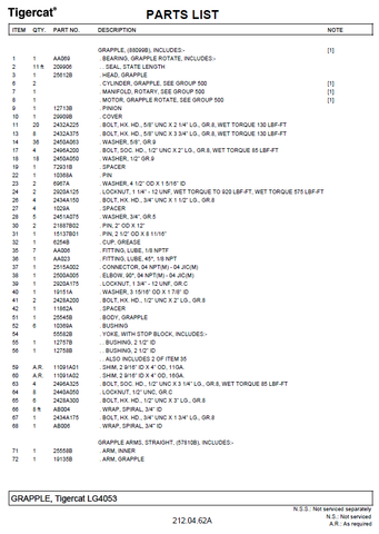 TIGERCAT LG4053 LOADER GRAPPLE PARTS MANUAL