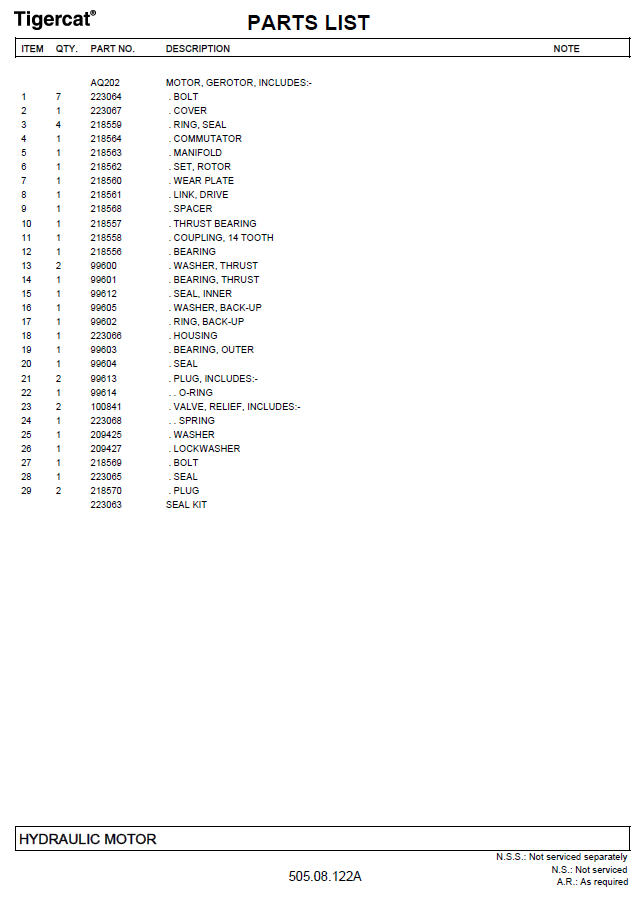 TIGERCAT LG5057 PARTS CATALOGUE MANUAL