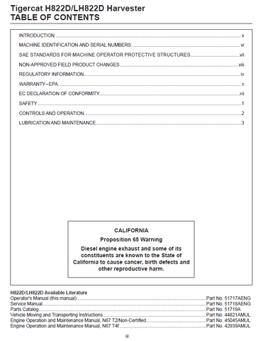 Download Complete Operator/User Manual For Tigercat LH822D Harvester | Serial No. (82283251-82284000)