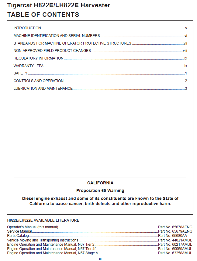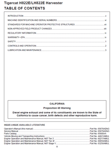 Download Complete Operator's/User Manual For Tigercat LH822E Harvester | Serial No. (82284001-82285000)