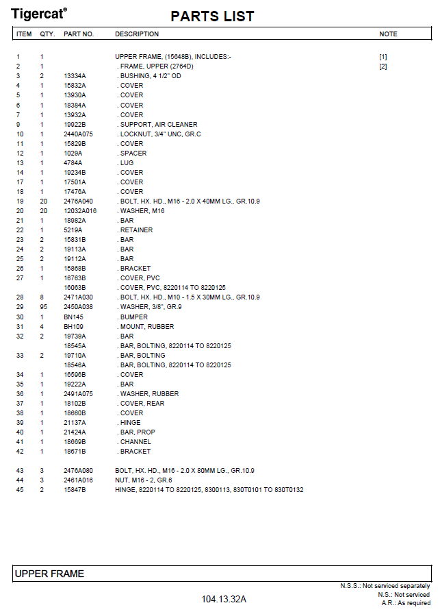 TIGERCAT LH830 PARTS CATALOGUE MANUAL