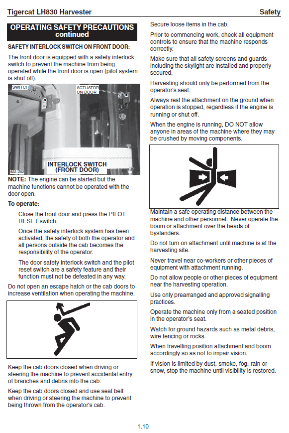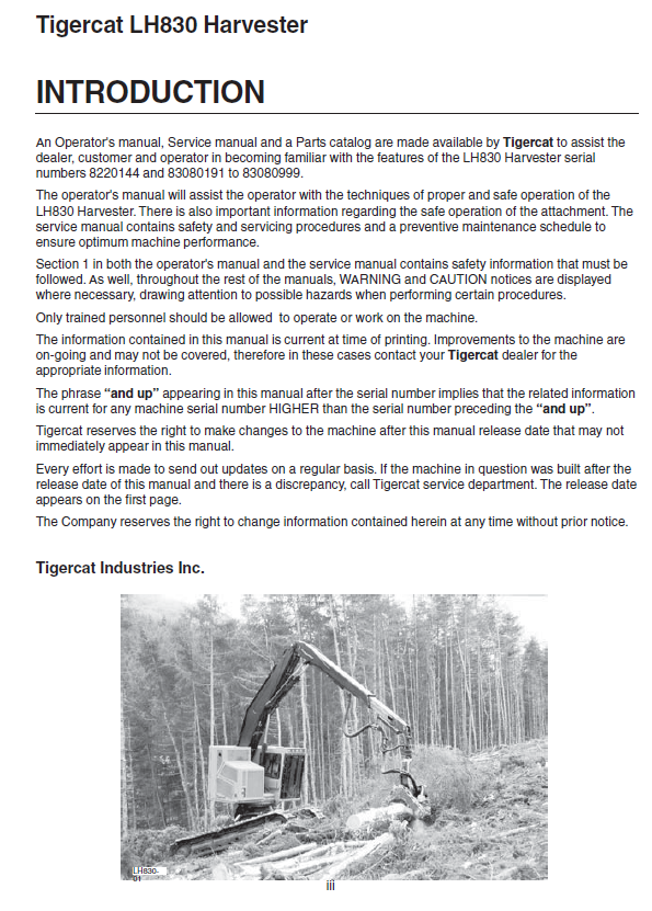 Download Complete Operator/User Manual For Tigercat LH830 Harvester | Serial No. (83080191-83080999)