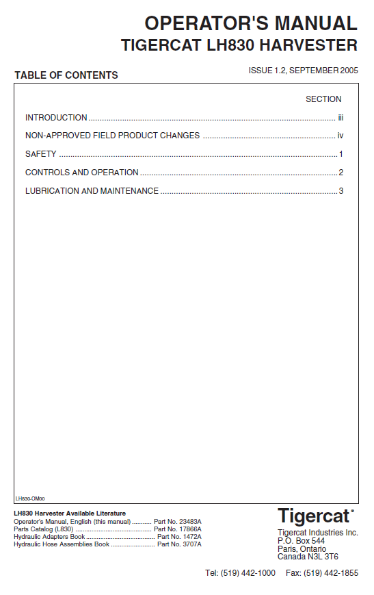 TIGERCAT LH830 MANUAL