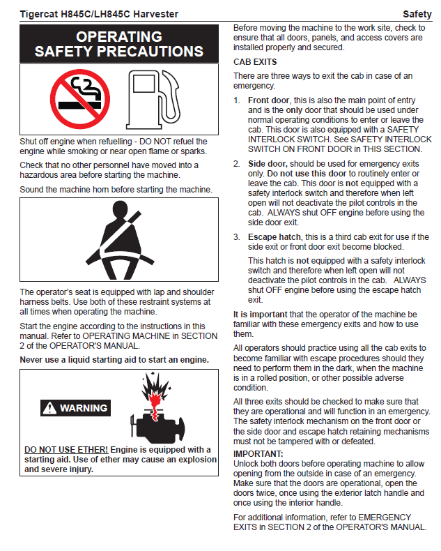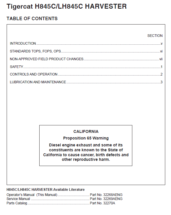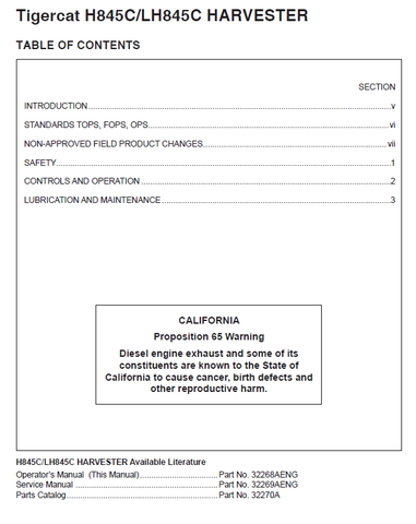 TIGERCAT LH845C HARVESTER OPERATOR/USER MANUAL (84581501-84582500, 84581501-84581860) - PDF FILE DOWNLOAD