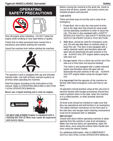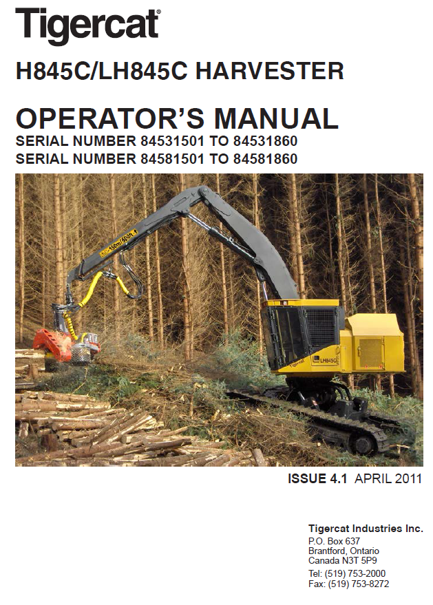 Download Complete Operator/User Manual For Tigercat LH845C Harvester | Serial No. (84581501-84582500, 84581501-84581860)