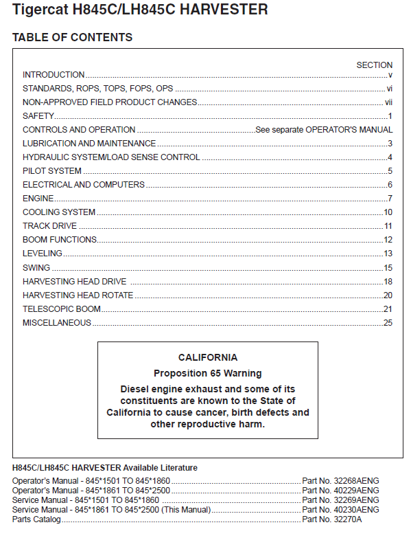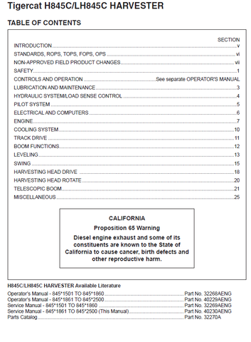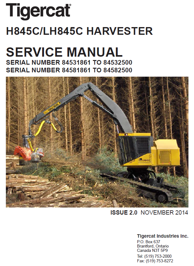 Download Complete Service Repair Manual For Tigercat LH845C Harvester | Serial No. (84581501-84582500, 84581861-84582500)