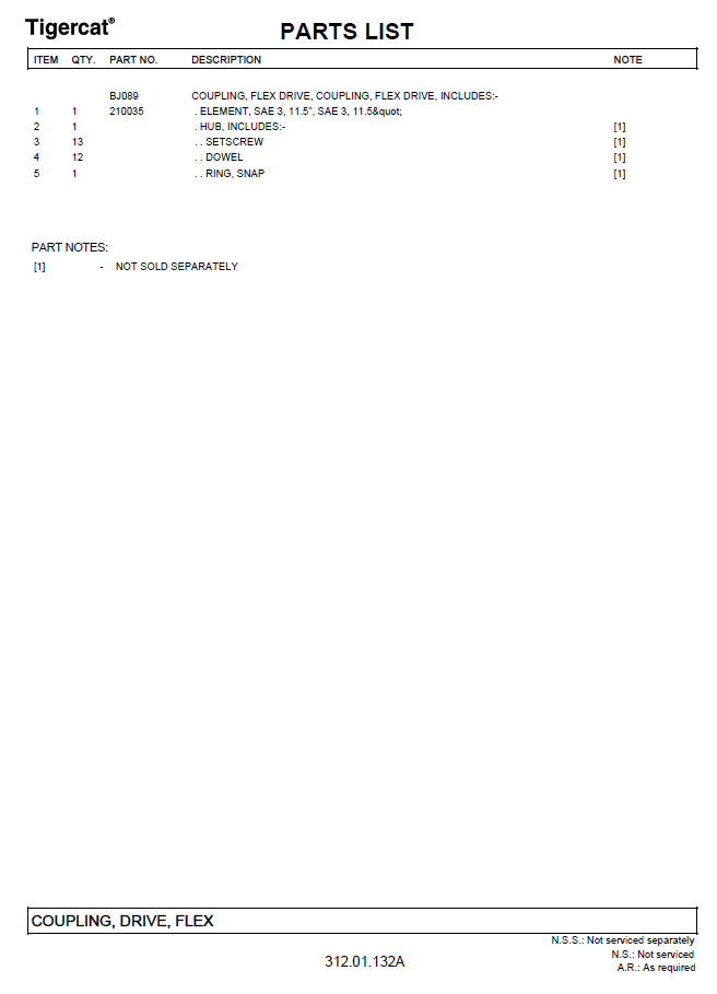 TIGERCAT LH845D PARTS CATALOGUE MANUAL