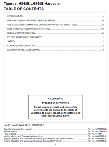Download Complete Operators/User Manual For Tigercat LH845E Harvester | Serial No. (84583001-84583500)
