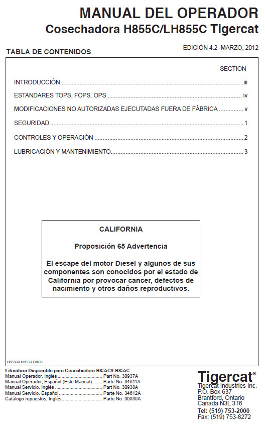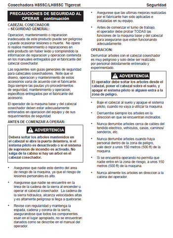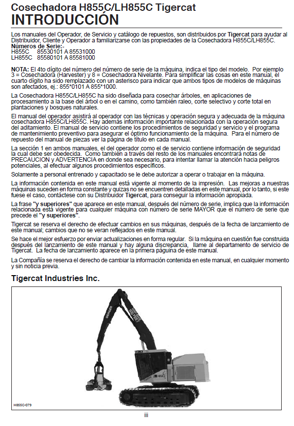 Download Complete Operator/User Manual For Tigercat LH855C Harvester | Serial No. (85580101-85582000, 85580101-85581000) - Spanish