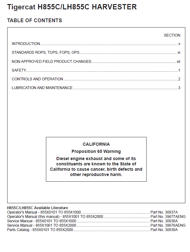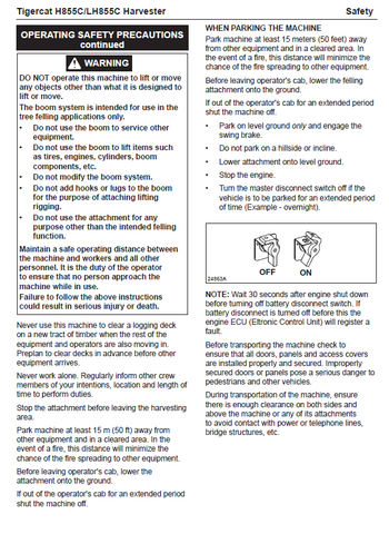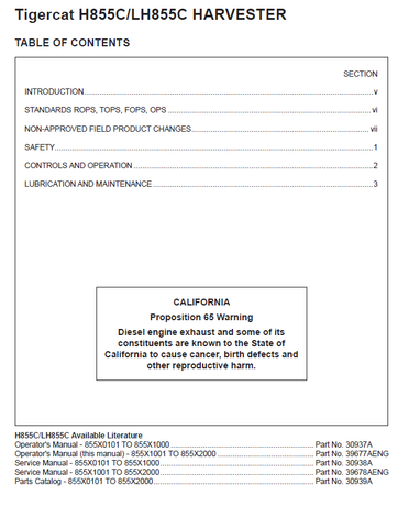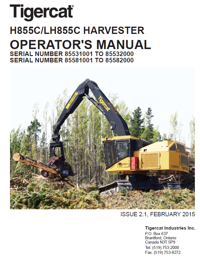 Download Complete Operator/User Manual For Tigercat LH855C Harvester | Serial No. (85580101-85582000, 85581001-85582000)